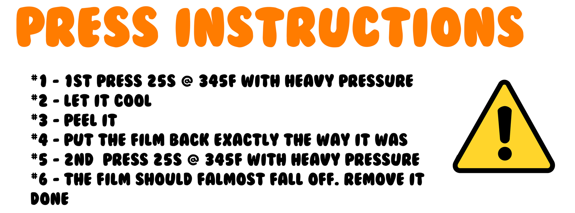- WAIT 24 HRS BEFORE WASHING AND DO NOT WASH WITH HARSH CHEMICALS OR THE TRANSFER WILL BE DAMAGED.